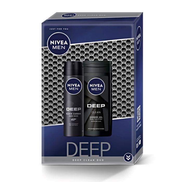 NIVEA MEN Душ-гел Deep, 250 mlИновативата формула с натурална микрофина глина привлича замърсяванията и почиства кожата ти в дълбочина, оставяйки усещане за свежест. Ефективният, но лек гел с дървесен аромат се превръща в бяла пяна, оставяйки кожата и косата ти освежени и подхранени.
