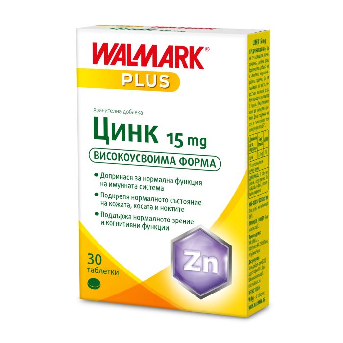 WALMARK Жълта линия цинк таблетки 15 мг., 30 бр.