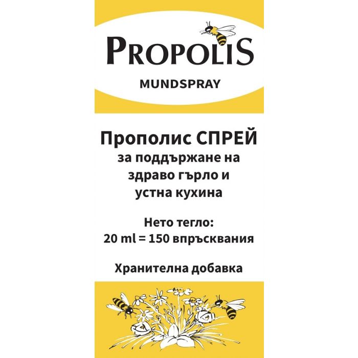 Разтвор за поддържане на здраво гърло и устна кухина. Съдържа Прополис, Манука мед, Мента и Евкалипт в алкохолен разтвор. Създава естествена бариера срещу външни дразнители. Подходящ за премахване на лош дъх, както и при афти.Прополисът е уникален пчелен продукт с изключително широк спектър на благоприятно действие върху организма. Допринася за нормалното функциониране на всички системи в организма и за поддържане на здрава дихателна и имунна системи. Манука е най-висококачесвения прополис от Нова Зеландия, със засилено действие спрямо Прополиса. Това е един изключително ефективен продукт, в който са съчетани ползите от естествения Прополис и актиивния Манука мед