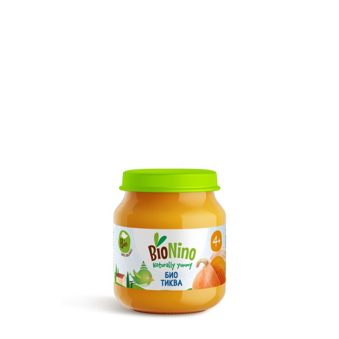 Тиква от биологично производство, продукт гарантирано произведен и сертифициран в ЕС. От началото на захранването освен ако няма друга препоръка от педиатър.