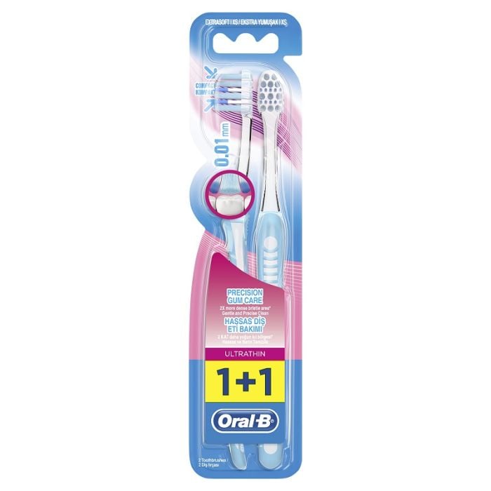 Четката за зъби Oral-B Ultra Thin Gum Care Toothbrush Pack of two е специално предназначена за чувствителни венци и зъби. Достига до труднодостъпните места като отстранява бактериите и плаката, благодарение на ултра тънките влакна с дебелина 0.01 mm. Те предпазват емайла и са много щадящи към венците. С Орал-Б Ултра Тънка Грижа за венците Четки за зъби 2 бр миенето на зъбите се превръща от задължение в удоволствие. След употреба зъбите са перфектно почистени и защитени, а усмивката е искрящо бяла. Предлага се в опаковка от два броя четки за зъби.