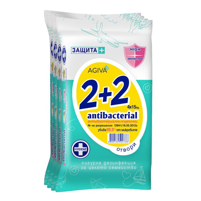 AGIVA Антибактериални кърпи, 15 бр. 2+2