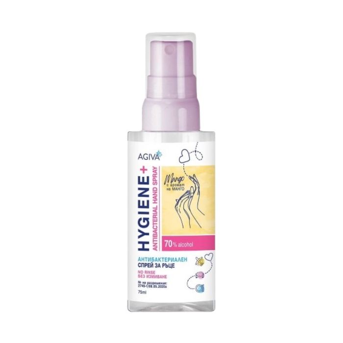 AGIVA HYGIENE+ Мини Дезинфекциращ спрей за ръце 70% алк Манго, 75мл