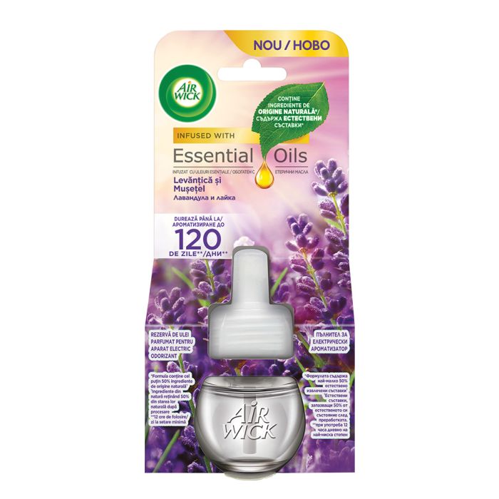 2. Пъхнете внимателно пълнителя с аромат в долната част на устройството за разпръскване, докато се чуе "щрак". Уверете се, че пълнителя е във вертикално положение във всеки един момент.