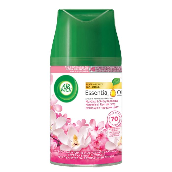 Air Wick Freshmatic са спрейове за освежаване на въздуха. Те изпълват дома Ви със свежите аромати, които обожавате и помагат за неутрализиране на неприятните миризми. Действа до 70 дни на най-ниска честота. Може да контролирате интезивността чрез регулиране на степента. Автоматично разпръсква аромат като поддържа постоянно ниво на свежест навсякъде във Вашия дом