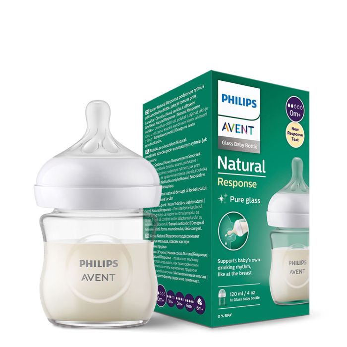 AVENT NATURAL RESPONSE Стъклена бутилка с биберон с поток 2, 120 мл 0м+
