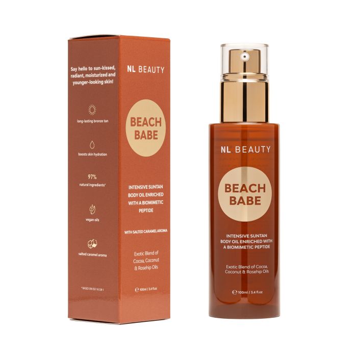 BEACH BABE е луксозна комбинация от пет внимателно подбрани веган масла, обогатени с божествен аромат на какао. Съдържа саликорния за подпомагане хидратацията на кожата и биомиметичен пептид за стимулиране придобиването на дълготраен, бронзов тен.