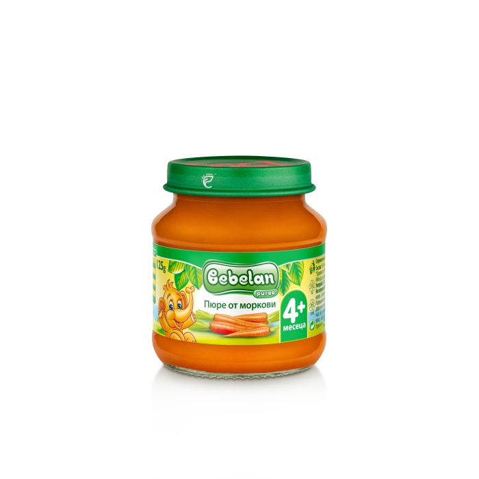 BEBELAN PUREE Бебелан зеленчуково пюре от био Морков. Предназначено за хранене на бебета над 4-месечна възраст. Идеално за първоначално захранване и приучване на бебето към нови и различни вкусове. Не съдържа глутен. Без добавена сол.
