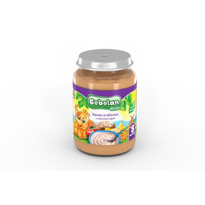 BEBELAN Пюре Безмлечна каша банани и ябълки с овесени ядки, от 8-я мес, 190г.