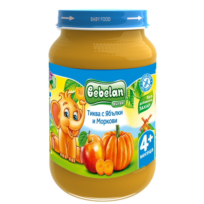 BEBELAN Плодово пюре тиква ябълки и морков 4+, 190г