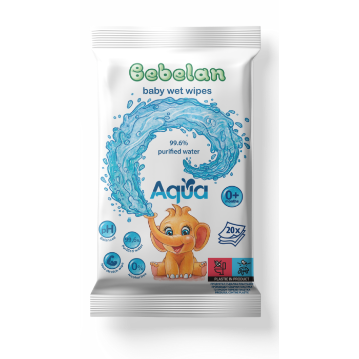 BEBELAN Влажни кърпи Agua 99,6 % пречистена вода, 20 бр