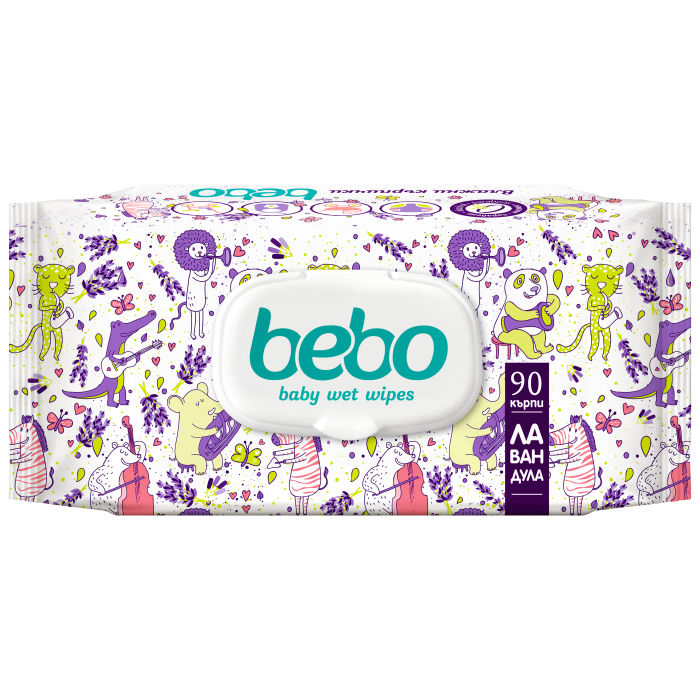 BEBO Влажни кърпички плътни с екстракт от лавандула с капак 90бр