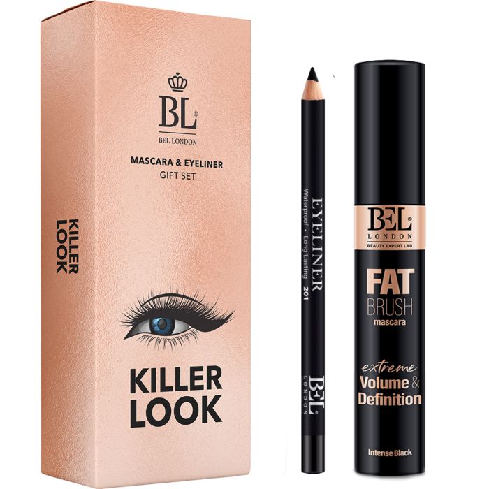 Bel London комплект от спирала и молив за съвършен поглед. Комплектът включва : FAT BRUSH MASCARA - спирала за обемни и дефинирани мигли, предлагаща грижа и изразителен поглед в едно. Благодарение на формата и влакната на четката, дори най-късите косъмчета на миглите са повдигнати,извити, дефинирани с невероятен обем