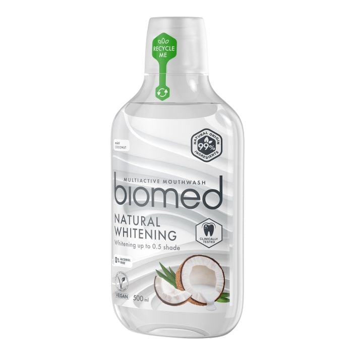 Водата за уста BIOMED NATURAL WHITENING за цялостна защита.