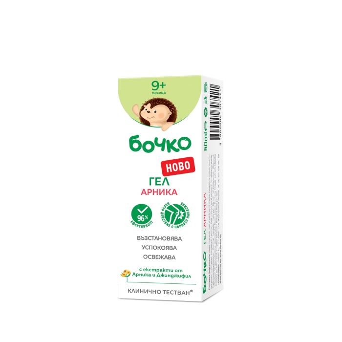 Успокоява с първото нанасяне. Възстановява и освежава кожата с екстракти от арника, джинджифил, бизаболол, пантенол и ментово масло. Екстрактът от растението Арника Монтана е известен с успокояващото си действие и намалява дискомфорта на кожата след падане. Гелът не съдържа спирт и консерванти и е подходящ за употреба при малки деца над 9 месеца.