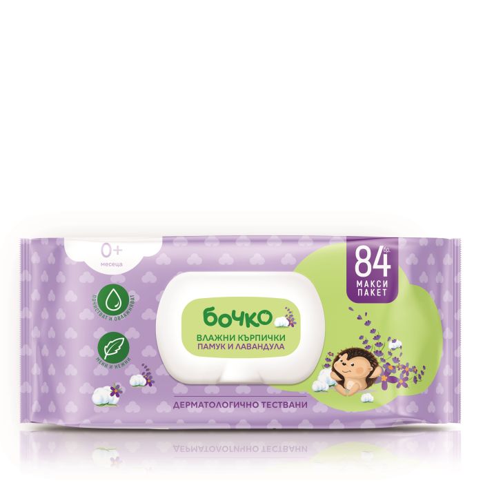 БОЧКО Бебешки мокри кърпички Памук и Лавандула, 84 бр