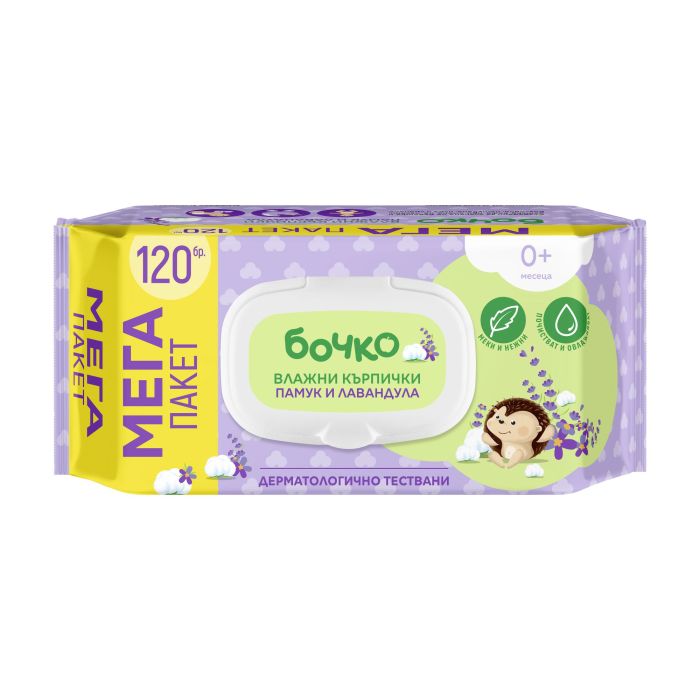 БОЧКО Влажни кърпички Памук и лавандула МЕГА ПАКЕТ 120 бр.