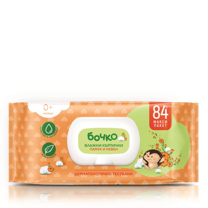 БОЧКО Бебешки мокри кърпички Памук и невен, 84 бр