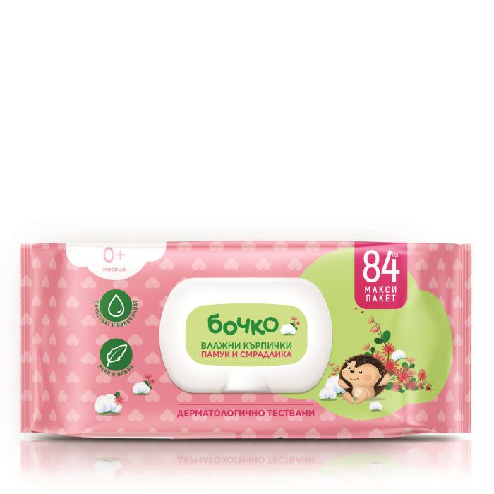 БОЧКО Бебешки мокри кърпички Памук и смрадлика, 84 бр