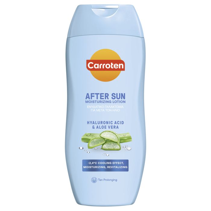 Този овлажняващ лосион за след слънце представлява освежаващо и охлаждащо кожата сорбе. Обогатен е с хиалуронова киселина и алое, които осигуряват дълбока хидратация, възстановяват изгубената влага и запазват прекрасния тен, като същевременно помагат за облекчаване на раздразненията, причинени от слънцето. Лосионът предлага незабавен охлаждащ ефект с усещане за-2,4°C, за освежена и възстановена кожа, след излагане на слънце.