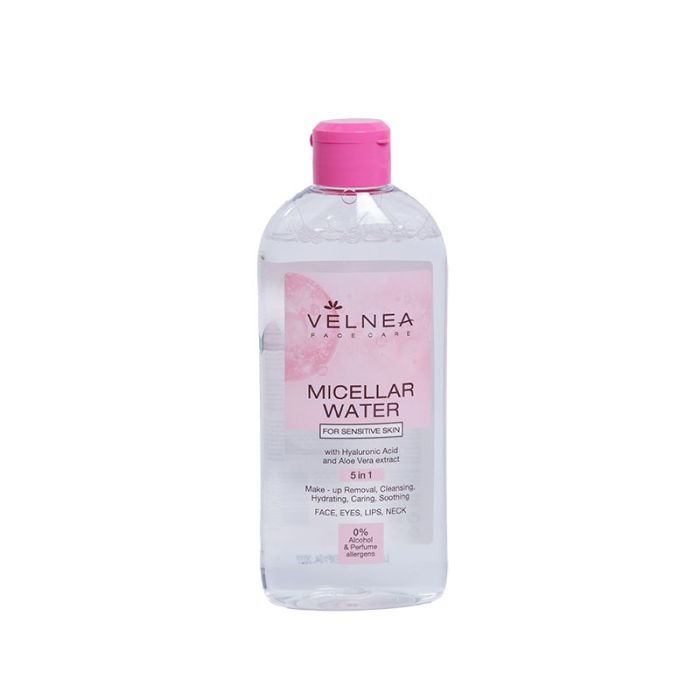 VELNEA МИЦЕЛАРНА ВОДА ЗА ЧУВСТВИТЕЛНА КОЖА е предназначена за ефективно премахване на грим и замърсявания от лицето, очите, устните и шията. Съдържа хиалуронова киселина, която помага в борбата със стареенето. Екстрактът от Алое Вера активно хидратира кожата, предоставяйки ѝ свежест, грижа и успокояващо действие.