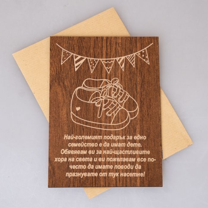 Дървена поздравителна картичка за бебе