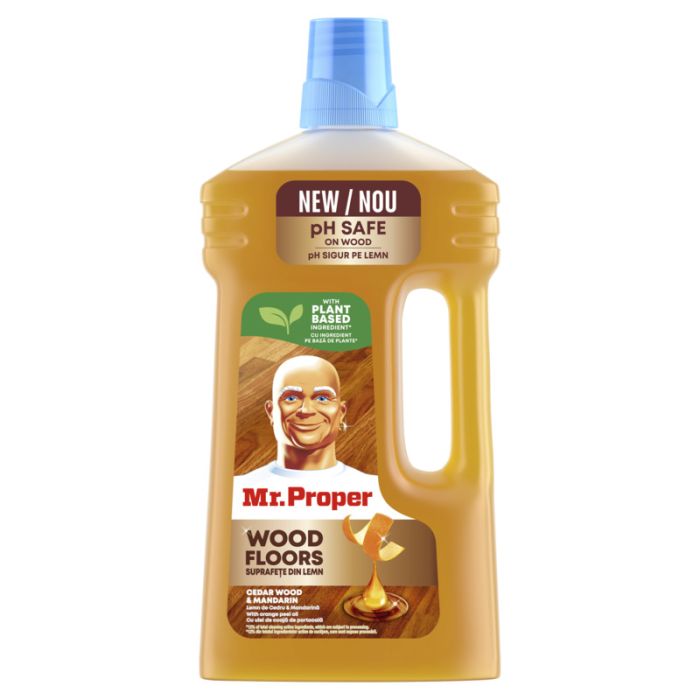 Mr. Proper Cleans and Protect е универсално почистващо средство за отстраняване на замърсяванията от дървени повърхности. Формулата на продукта е обогатена с бадемово масло, което предпазва всякакъв тип повърхности от дърво, и ги подхранва, без да запушва порите на дървената структура. Продуктът образува нежен гланцов слой, който полира дървото и го защитава от влага като му придава свеж и естествен вид. Mr. Proper Cleans and Protect гарантира безупречна чистота и блясък, препаратът е подходящ за обработени дървени повърхности, плотове, дюшеме, дървени врати, первази и други.