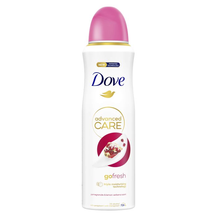 Dove Advance Go Fresh Pomegranate and Lemon! Подсигурява 72-часова защита. Основната нотка е аромат на вкусен нар, допълнена от свеж лимон и нотки на пъпеш, праскова, слива и ананас.