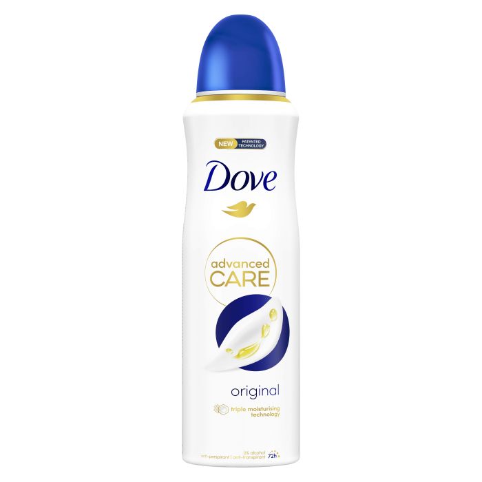 Новите дезодоранти от серията Dove Advance Care са с патентована технология за тройно овлажняване. Насладете се на деликатна грижа за кожата на подмишниците с дезодорант спреят Dove Advance Original с 1/4 овлажняващ крем и витамин E. Той подсигурява 72-часова защита и осезаема грижа. Технологията използва по-стабилни и по-ефикасни активни вещества против изпотяване.
