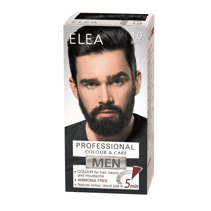 ELEA Professional Colour& Care MEN е боя за коса специално разработена за мъже. Деликатната формула без амоняк възвръща естествения вид на косата и може да се използва за боядисване на брада и мустаци.