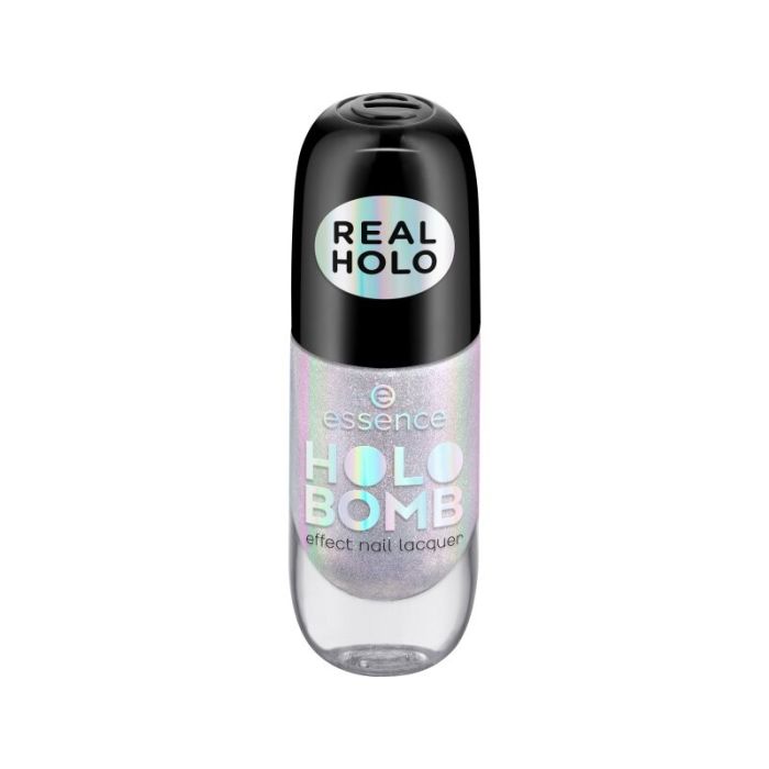 Добре дошли в колекцията лак за нокти на бъдещето! Ефектните лакове за нокти HOLO BOMB имат уникален завършек благодарение на холографските пигменти, които светят във всеки цвят на дъгата. Перфектен за всеки, който обича да се откроява и обича модерен външен вид. Модерният ефектен лак се нанася бързо и лесно с четката с двойно докосване.
