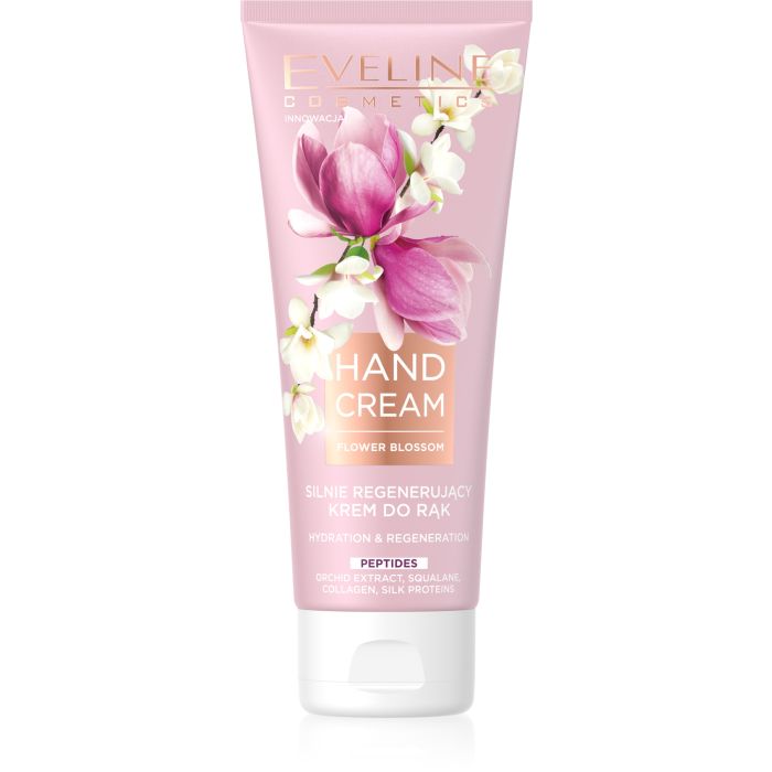 Кремът Eveline е обогатен с концентрирани активни съставки като: ниацинамид, урея, хиалуронова киселина и витамини А и Е за подпомагане на естествените процеси на регенерация и осигуряване на мекота и еластичност на кожата. Прекрасен аромат ще повлияе на вашето пролетно настроение. Кремът Eveline е идеална козметика за хора, които винаги искат да имат красиво овлажнени и подхранени ръце.Силно регенериращият крем за ръце от серията Flower Blossom е иновативна козметика, която осигурява ефективна и дълготрайна хидратация на кожата на ръцете. Кремът е създаден от най-висококачествени съставки, включително екстракт от орхидея и копринени протеини.