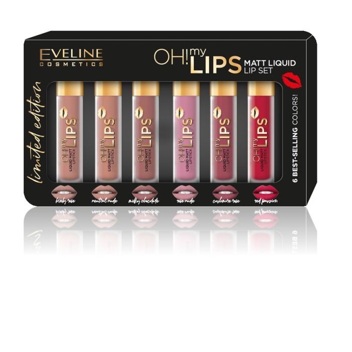 EVELINE MAKE UP OH! my LIPS Подаръчен комплект матово течно червило за устни, различни нюанси 6 бр