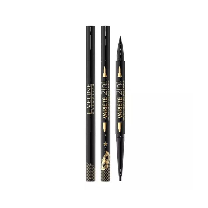 ИНОВАТИВНА, УЛТРА ИЗДЪЛЖАВА 2в1 ОЧНА ЛИНИЯ И МОЛИВ ЗА ОЧИ. Прецизният връх на очната линия с писалка очертава перфектна матова линия с един щрих. Автоматичният накрайник на молива позволява да се очертае контур по протежение на миглите и по водната линия на окото. Свойствата на меката формула са перфектно пренасяне на цвета, без да е необходимо да притискате към кожата. И двете формули са изключително издръжливи и се стягат бързо, без да се отпечатват върху клепача или да се размазват през целия ден. Молив в наситено черен цвят. ще работи не само като козметично средство за фино маркиране на линията на миглите, но и като очна линия или основа за сенки. Приложението ще бъде лесно за всеки, благодарение на меката формула и удобната форма.