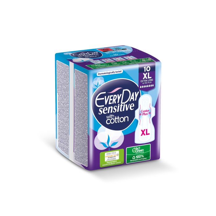 Изключително дълги ултра тънки дамски превръзки, с двойка защитни крилца. С изключително меко, хигиенично покритие, което съдържа памук и позволява на кожата да диша. С революционната Center Plus технология, с подсилена сърцевина, която осигурява до 30% повече абсорбираща повърхност в центъра на превръзката, в сравнение с други ултра тънки превръзки, за несравнима защита от протичане отстрани. С двойка защитни крилца : “централни” крилца, които предпазват от странично протичане , и в същото време „задни” крилца, които осигуряват по -добро захващане, и предпазват от протичане отзад. С 40% по-дълги, в сравнение с EveryDay Ultra Plus Normal. Идеални в случаите на много силен цикъл, и за употреба през нощта. Осигуряват сигурна защита от раздразнения, с докосване на памук, и сертифицирана толерантност към кожата!