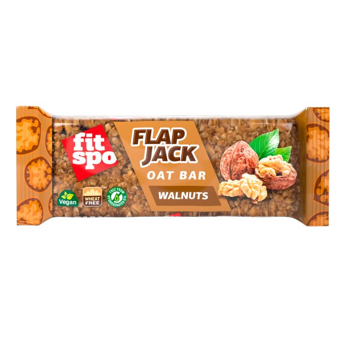 Веган флапджак бар със селектиран сорт овесени ядки, висококачествени сушени плодове и орехови ядки. Правен на ръка по стара традиционна английска репецта в една от най-престижните фабрики в Англия, с дългогодишен опит в производство на флапджак. Съдържа перфектна комбинация от бързо и бавно разграждащи се въглехидрати и е източник на енергия и бета глюкани. Създаден с грижа за теб и твоето тяло.
