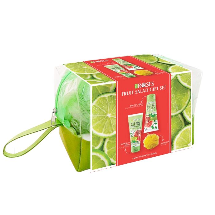 FRUIT SALAD LIME Комплект Шампоан, 200 мл + Маска за коса, 200 мл + панделка за баня + несесер