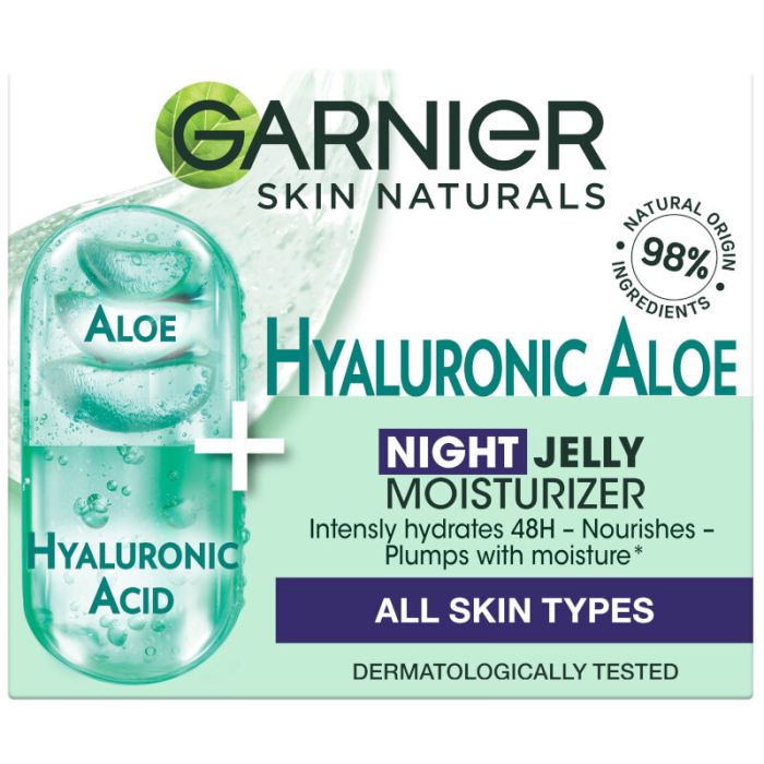 За всеки тип кожа, с 48-часов ефект, възстановява влагата на кожата през нощта. Обогатен с органично алое вера, хиалуронова киселина и арганово масло във формула с 98% естествено извлечени съставки* с успокояваща гелообразна текстура, която оставя кожата да изглежда отпочинала.