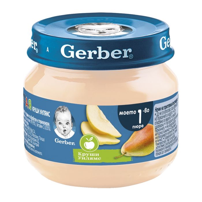 Gerber пюре е с нежна текстура и естествена сладост на вложените в него 100% круши. Бебешкото пюре не съдържа добавени захари, сгъстители, консерванти и оцветители. Gerber пюре от круши е подходящ плодов вкус, който да предложите на вашето мъниче.