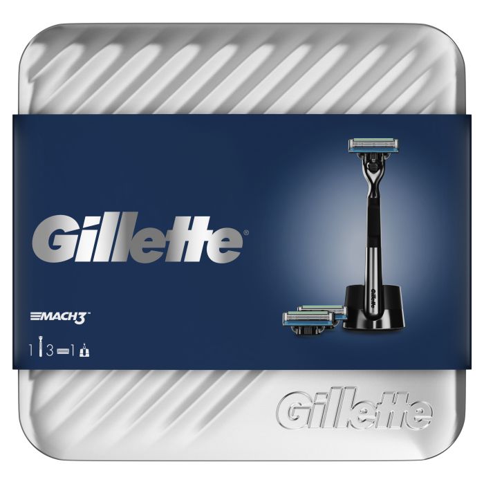 GILLETTE MACH3 Подаръчен комплект Самобръсначка + 1 резерва + държач + метална кутия