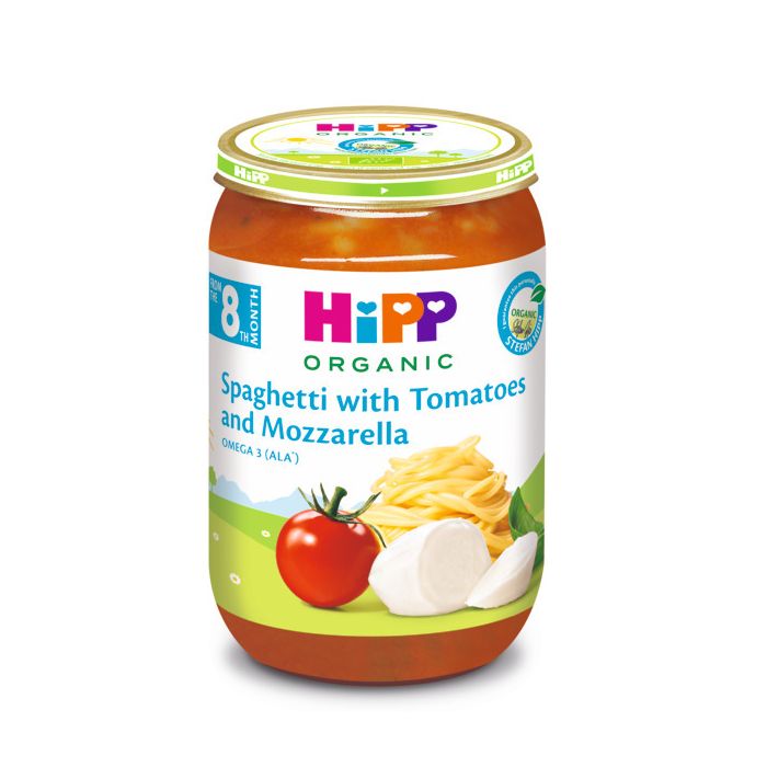 Hipp био пюре спагети с домати и моцарела 8М+ 220 гр е вкусен порцион, който ще задоволи детските хранителни нужди по време на едно хранене. Освен това, ще внесе в организма всички полезни витамини и минерали.