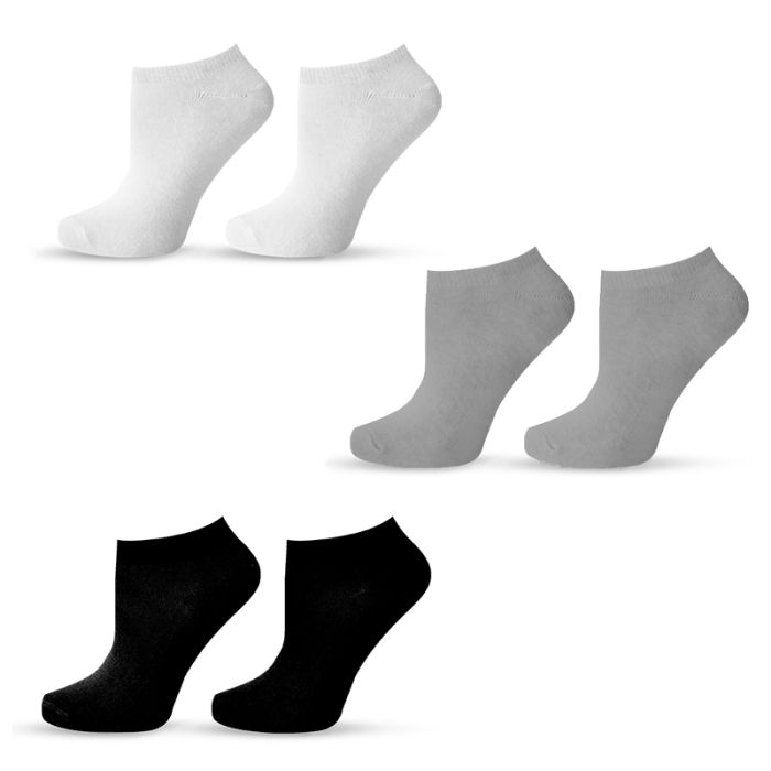 HAPPY FOOTTOPIA BASIC NO SHOW Чорапи памук бял, сив, черен 35-38, 3 БР