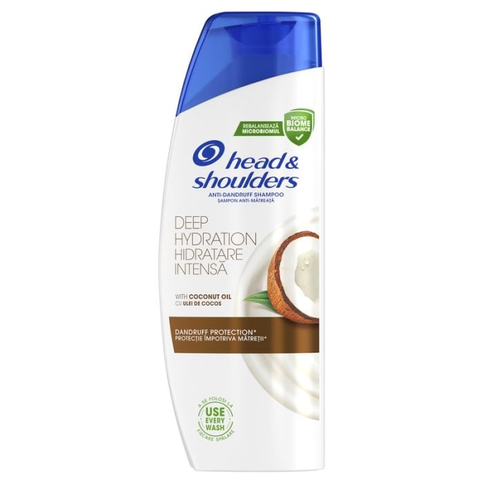 Head&Shoulders Deep Hydration е шампоан против пърхот, с форумла с балансирано pH и обогатена с кокосово масло