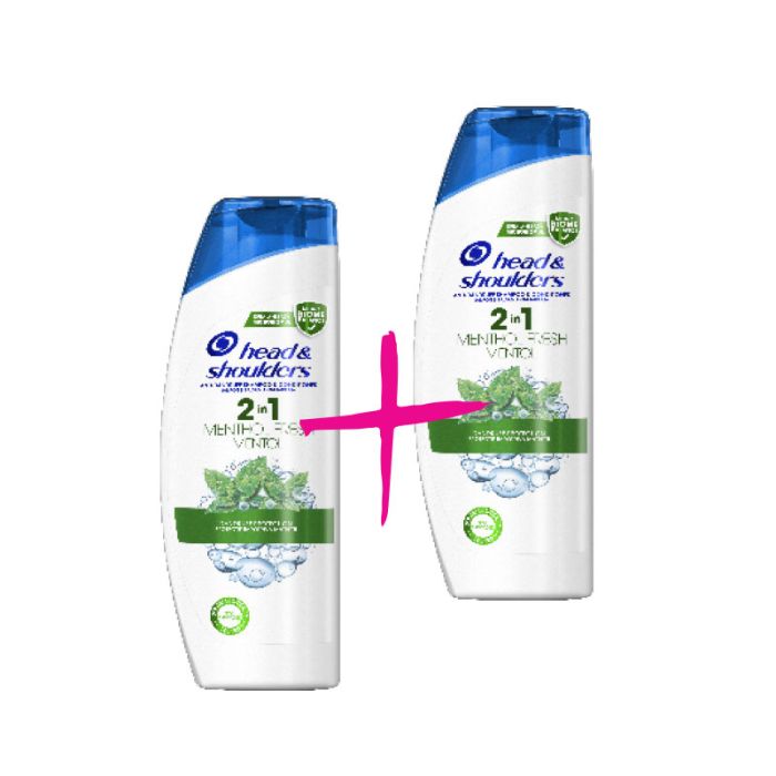 Отървете се от пърхота с ШАМПОАН Хед енд Шоудърс 2-в-1 + балсам с охлаждащ ментол.Три екшън формула почиства, предпазват и овлажнява (с редовна употреба) скалпа и косата - така че можете да останете до 100% без люспи и да получите красива, здрава коса.