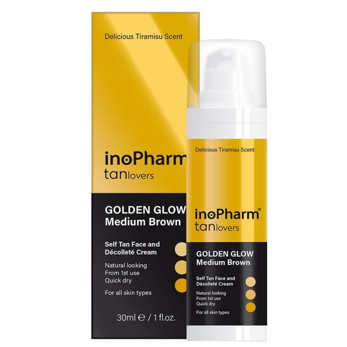INOPHARM GOLDEN GLOW Автобронзантен крем за лице и деколте, мидиъм , 30 мл