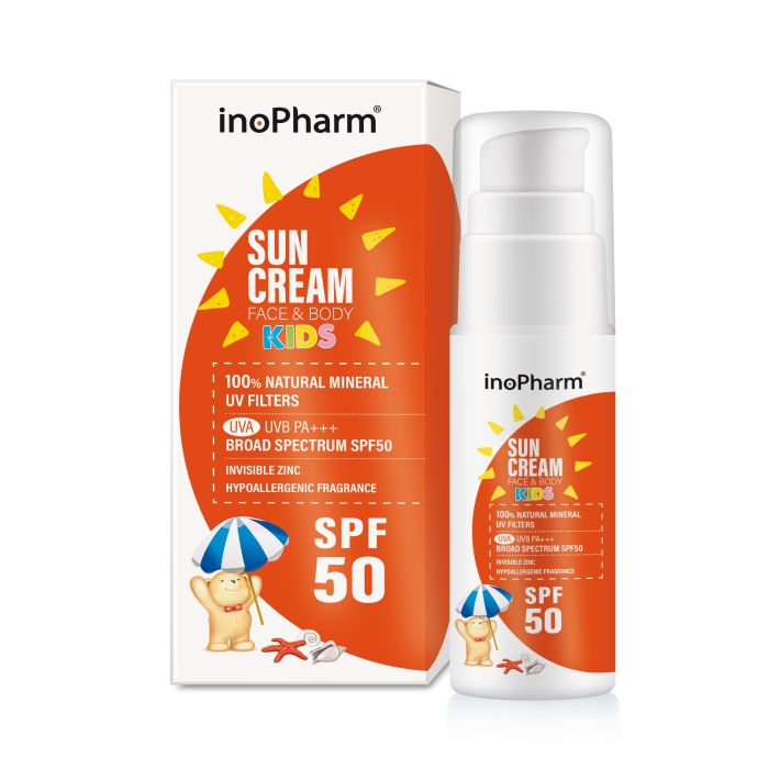 INOPHARM Слънцезащитен крем за деца SPF 50 за лице и тяло, 100 г