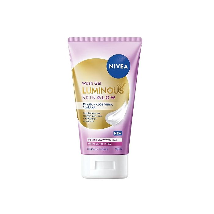 Измивен гел за лице NIVEA Luminous Skin Glow почиства в дълбочина и действа върху трите измерения на сиянието: