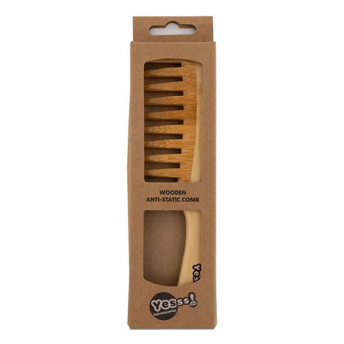 Дървен антистатичен гребен. Широките зъбци се плъзгат гладко и не са склонни да скубят косата. Опаковката съдържа 1 бр.