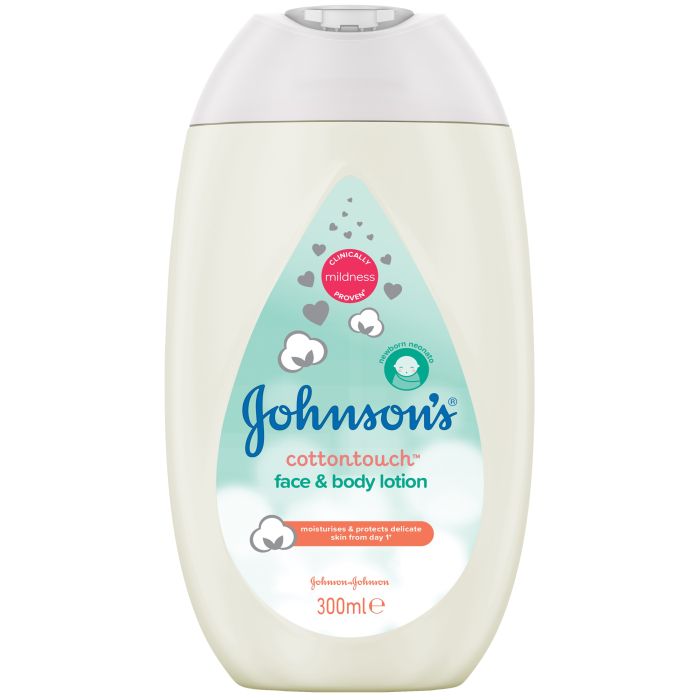 НОВИЯТ Johnson's CottonTouch лосион за лице и тяло съдържа истински памук и е предназначен специално за деликатната, чувствителна кожа на новородените бебета. Лосионът на водна основа хидратира и предпазва деликатната кожа от първия ден на Вашето бебе. Той е лек, нежен и позволява на кожата да диша, без да оставя следи и усещане за лепкавост