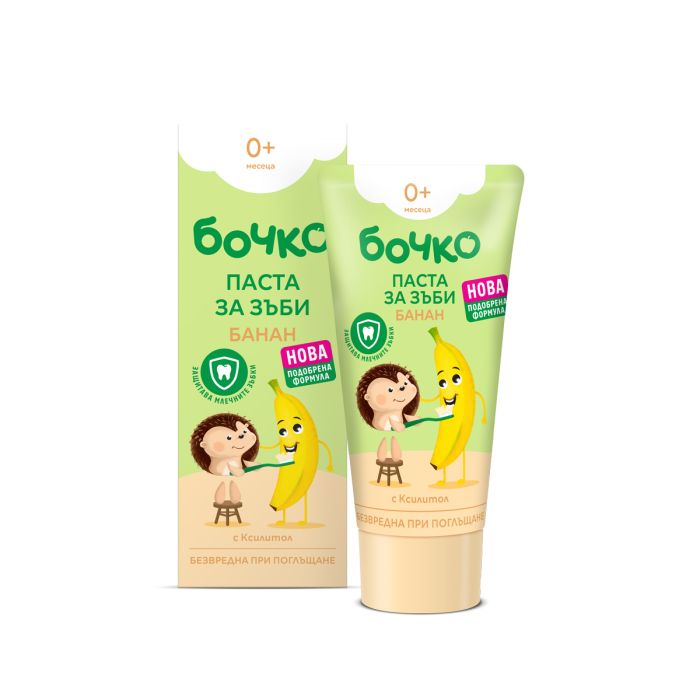 БОЧКО Паста за зъби банан 0+, 50 мл.